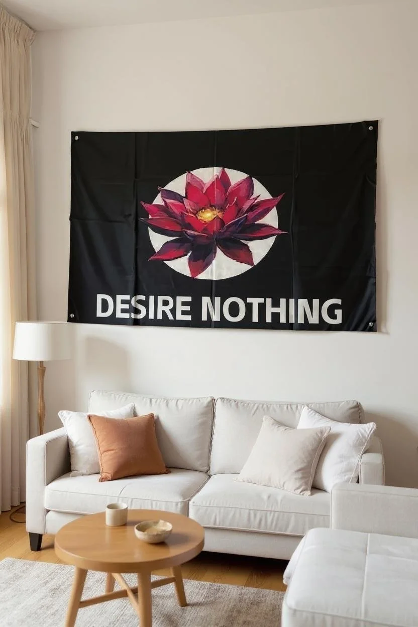 We often get asked about the stories behind our designs. For a piece as impactful as our "Desire Nothing" flag, there's certainly a deep well of inspiration. Here, our lead designer shares some insights into this captivating creation.